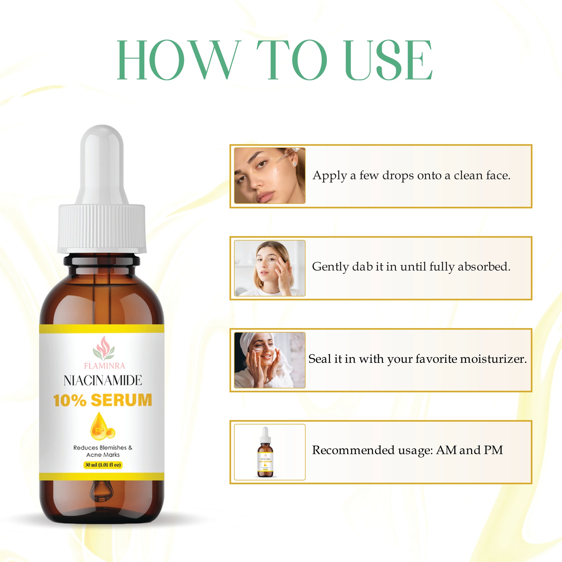 Discover your go-to solution for clear, healthy, and radiant skin with our 10% Niacinamide Face Serum. Powered by a potent concentration of niacinamide, this lightweight serum works effectively to fade acne marks, reduce dark spots, control excess oil, and minimize pores.